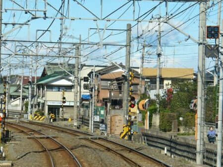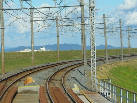 勾配をのぼり、盛土区間になります。