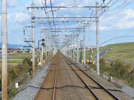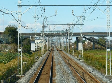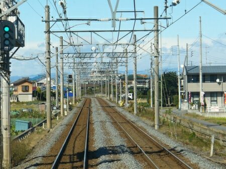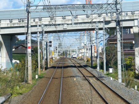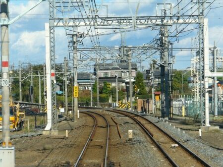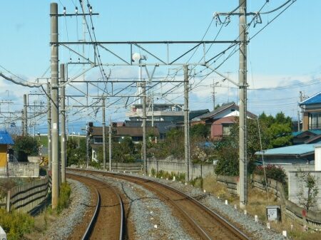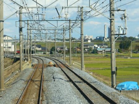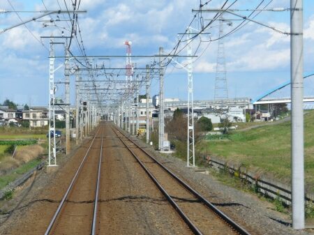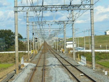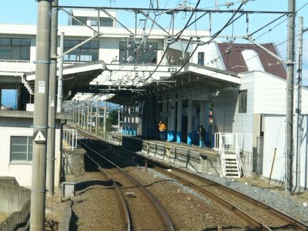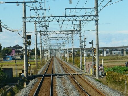 保線用基地が終わり、変電所横のカーブを曲がると新古河駅です。
