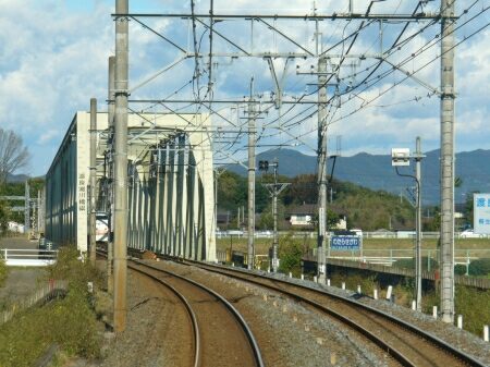 渡良瀬川を渡ると雑木林の中をカーブで曲がります。
