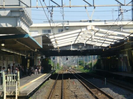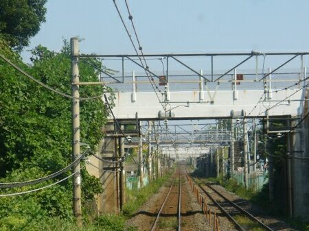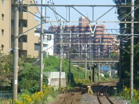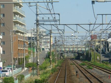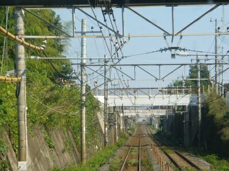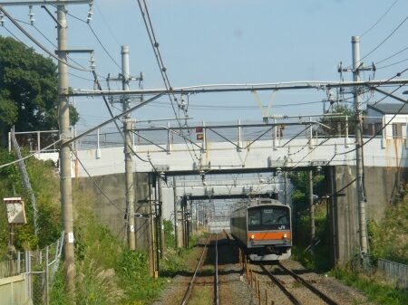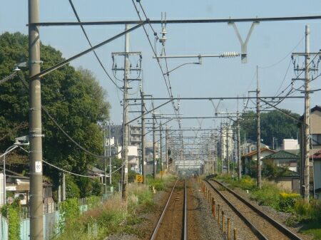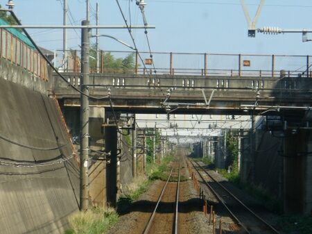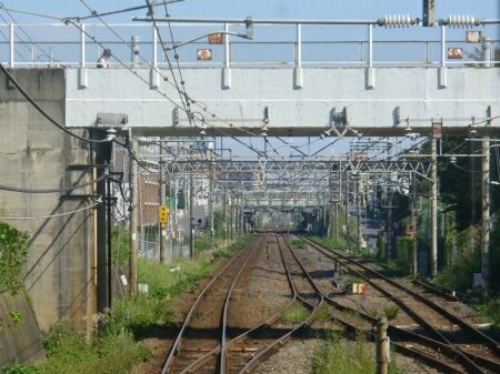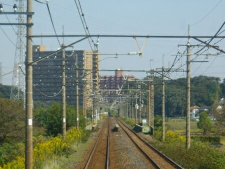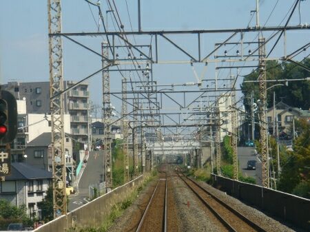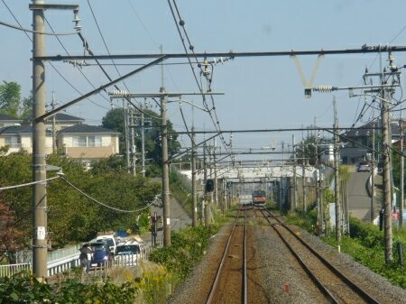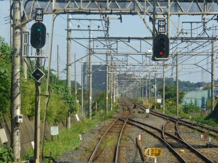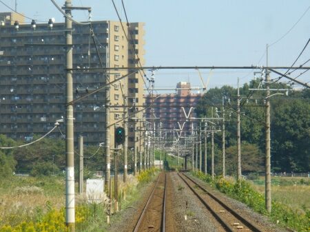 上下線が広がり、貨物列車退避用の中線が始まります。
