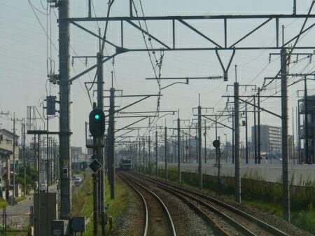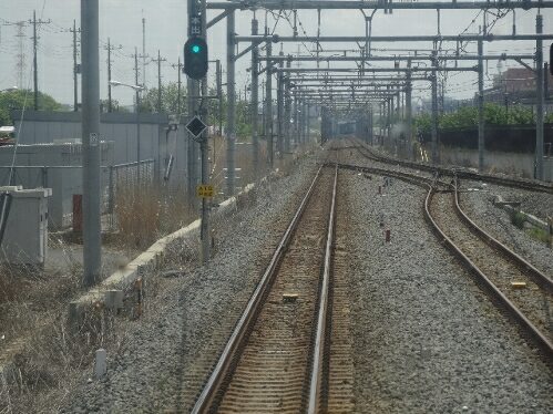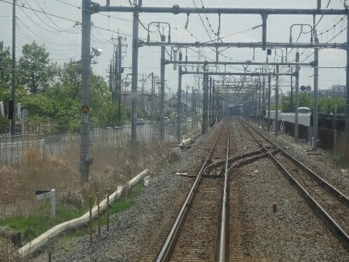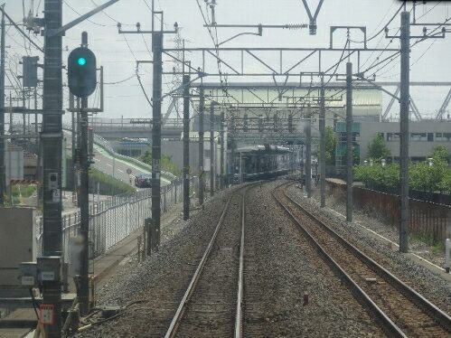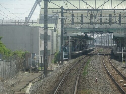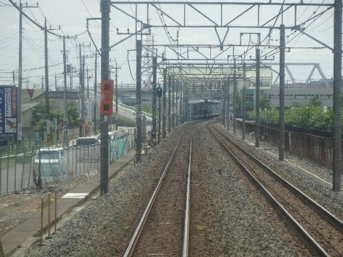 カーブを曲がり、府中本町駅方面の線が近付くと三郷駅です。
