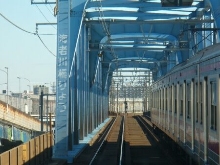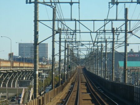 二俣新町駅を出るとすぐ西船橋駅からの線の下を交差します。