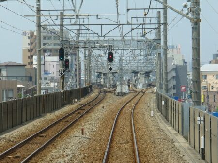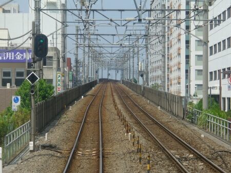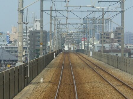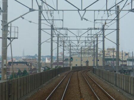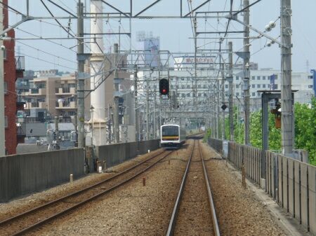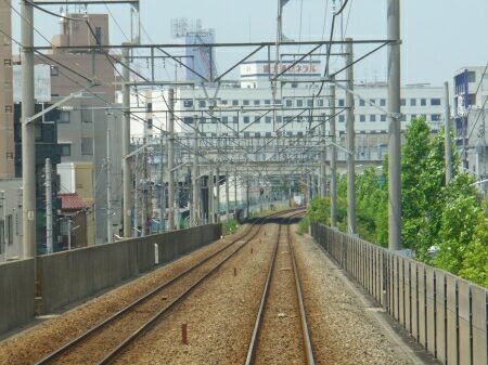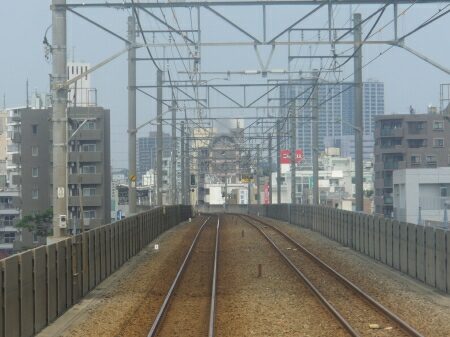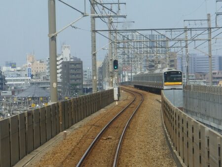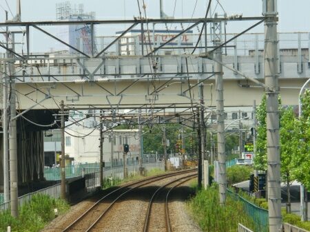 武蔵小杉駅を出ると高架にのぼります。