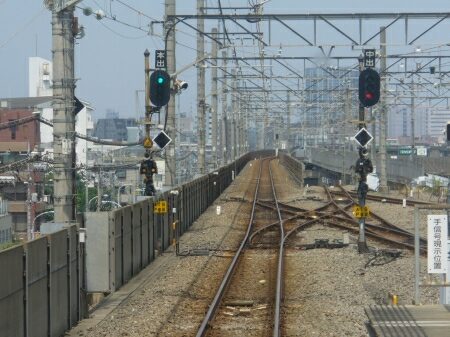 カーブが終わり、上下線が離れます。