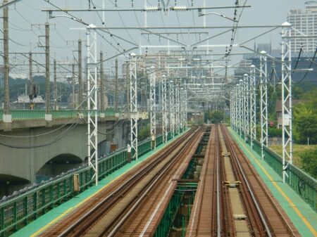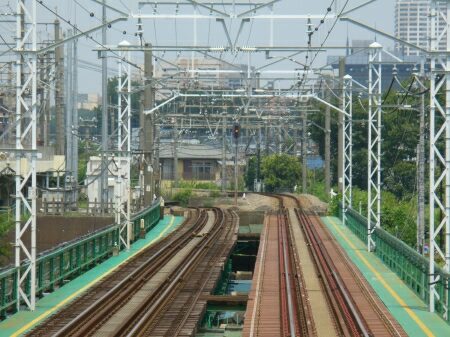 立川駅方面の線はくだり勾配になり、武蔵野線の下を交差します。