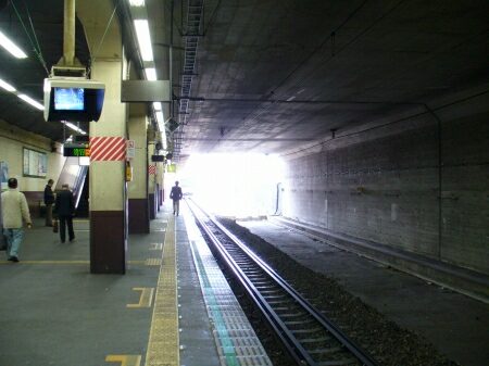川崎駅方面ホームです。ホーム約半分がトンネル内になっています。