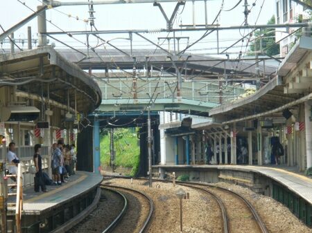 川崎駅方面のホームは武蔵野線の下を交差する関係で一段低いところにあり、