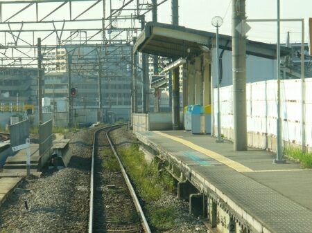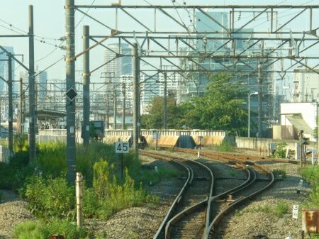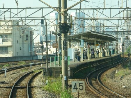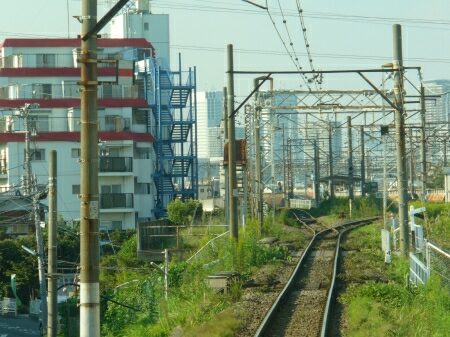 八丁畷駅を出ると東海道貨物線と分かれ、