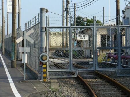 浜安善貨物駅の駅舎手前で在日米軍鶴見貯油所ナンバー1への線路が分かれます。