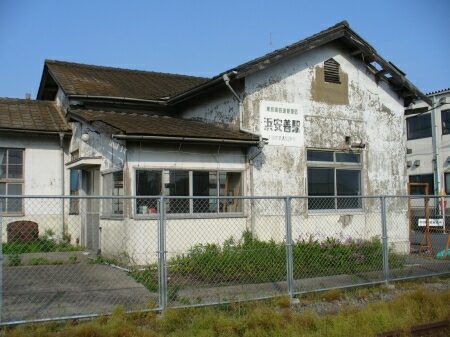 浜安善貨物駅はなんと駅舎が残っています。