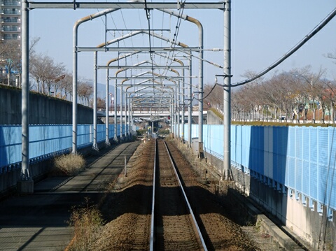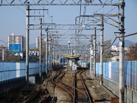 この部分の高架は単線分しか造られていません。