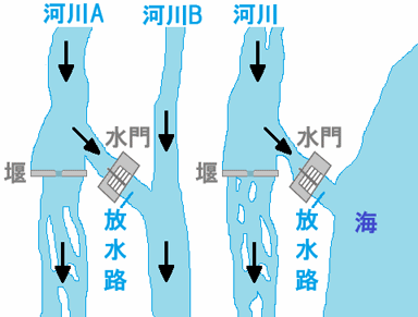 そのため、河川の流量が増えたとき、比較的余裕のある河川に流したり、