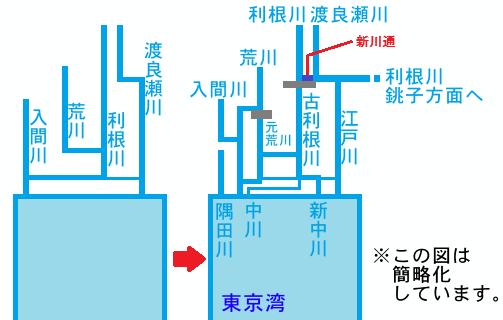 大落古利根川、幸松川、倉松川、中川などの河川の水を江戸川に放水しています。