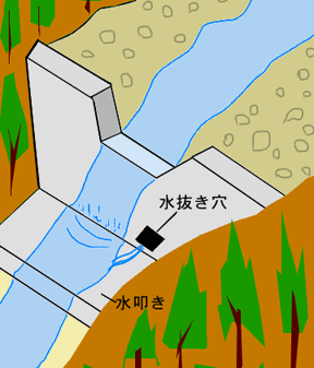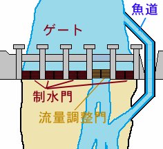 堰は大きく分けて堰堤(えんてい)などの固定堰、