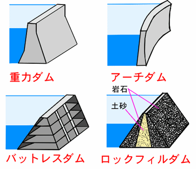 重力ダムはダム躯体の重さ自体で貯水した水の水圧を抑えるダムで、