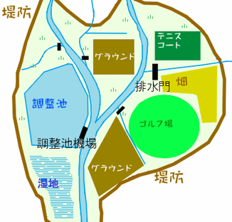 これらの場所に水が貯まって滞留することで河川の増水を防ぎ、