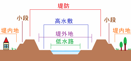 (紛らわしいのですが、堤外地は両岸の堤防の間(内側部分)を言います。)