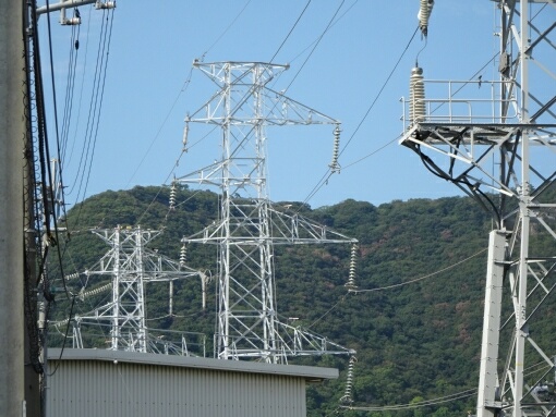 一番手前の送電線鉄塔は地中引き上げタイプになっていますが、
