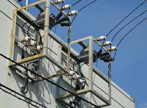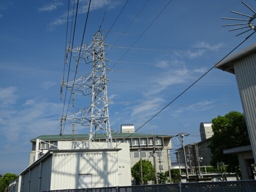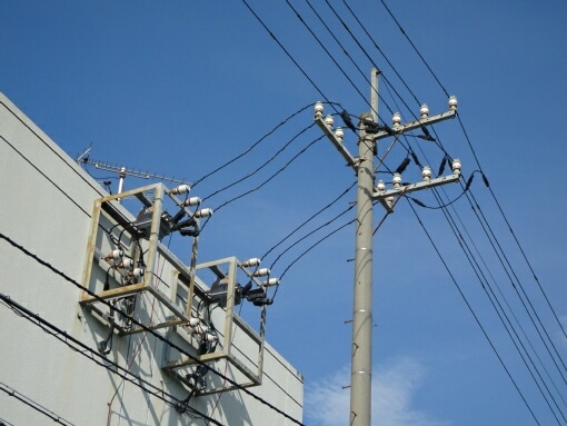 電力総合研修所の建物へ引き込まれる高圧配電線です。