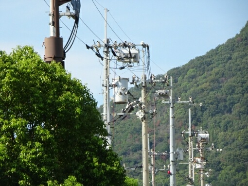 何れの配電線柱も装柱がごちゃごちゃしています。