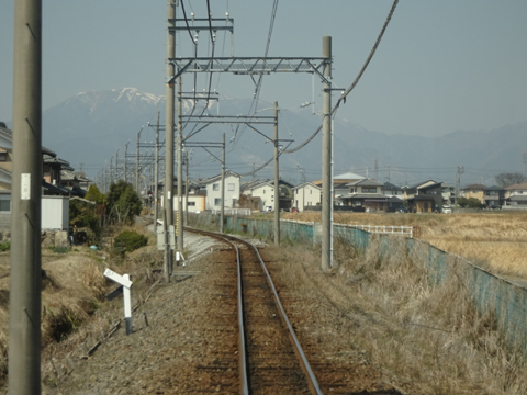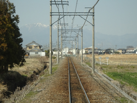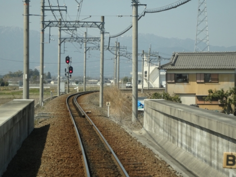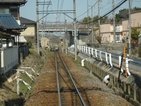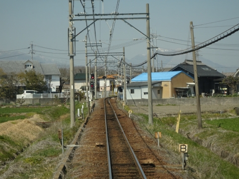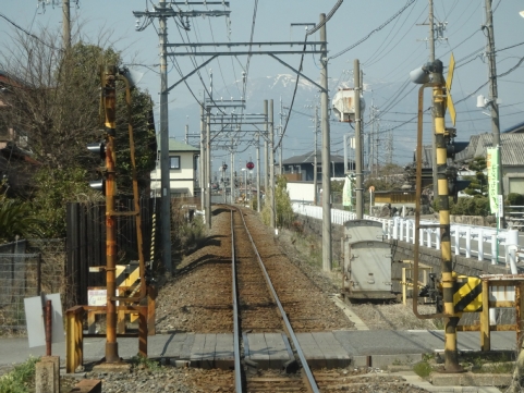 直線ですが北勢線は時速45㎞が最高速度なので、さほど速く走らないのですが、