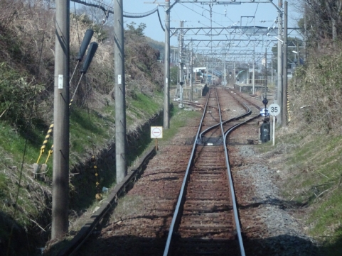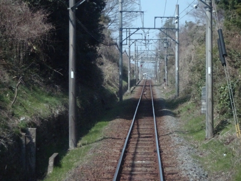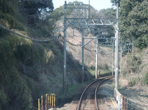 切通しになり、右カーブです。