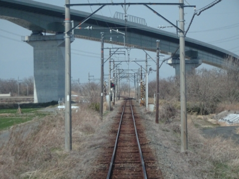 続いて県道8号線の上を交差します。