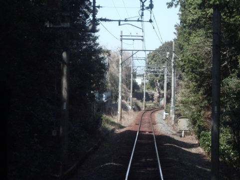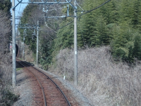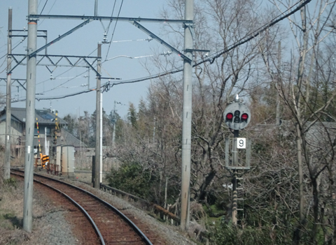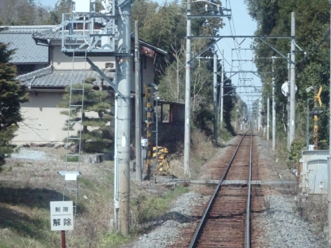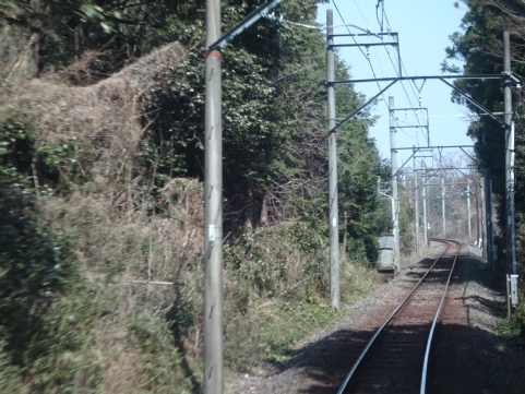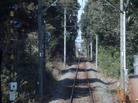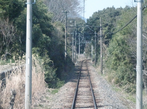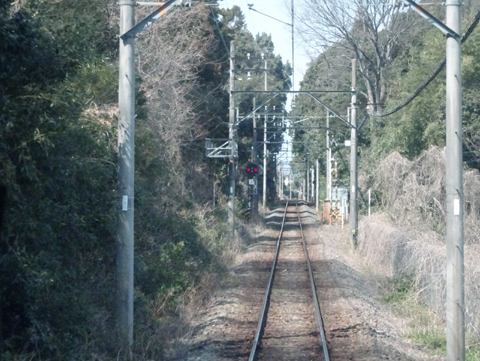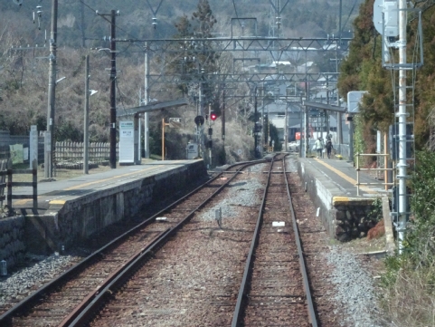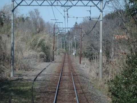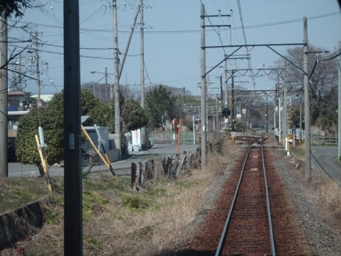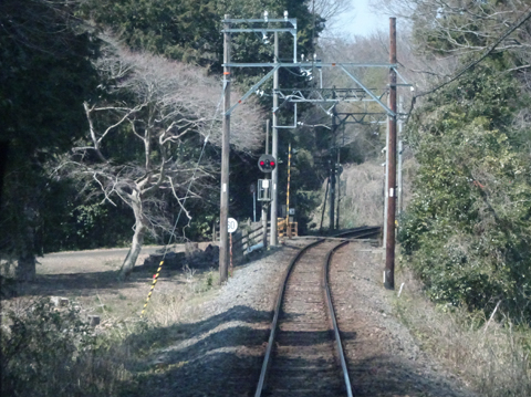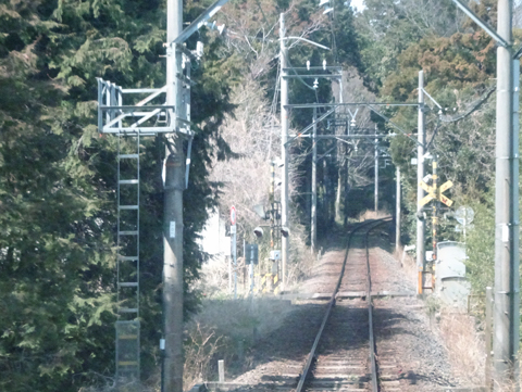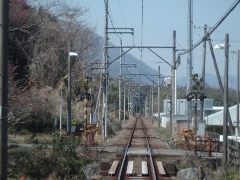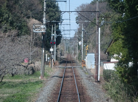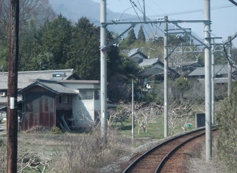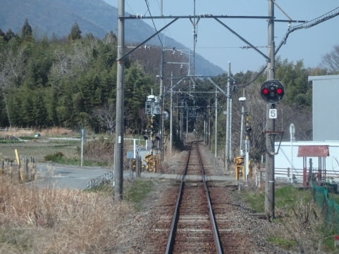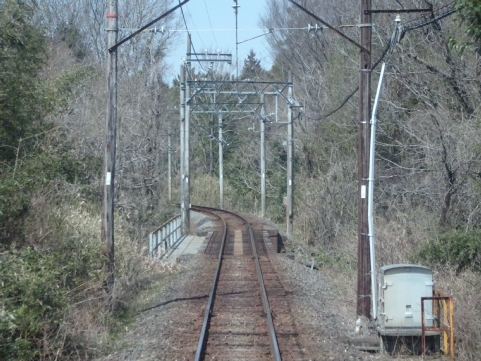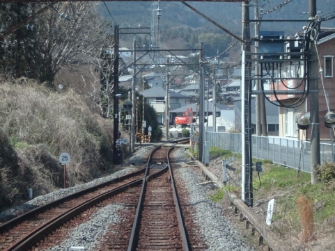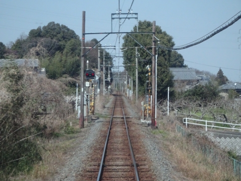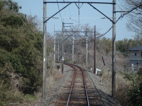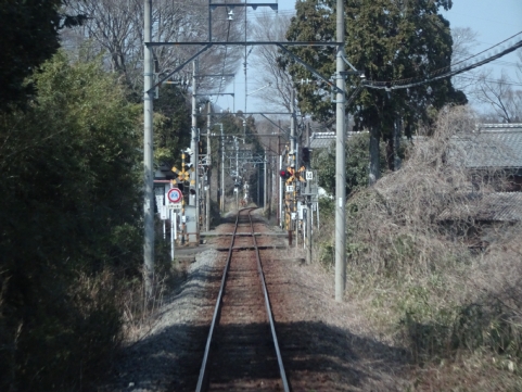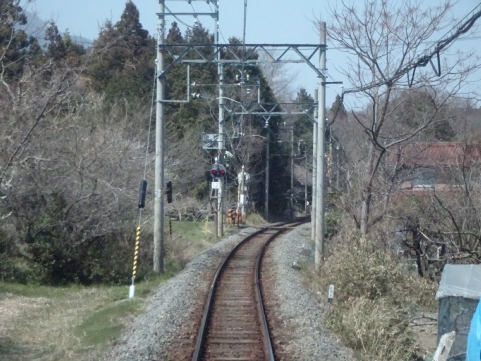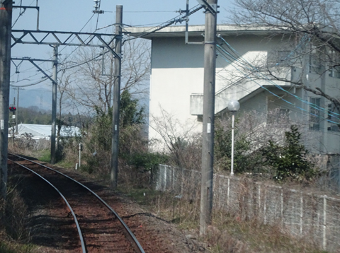 美濃津屋駅を出るとすぐ右カーブです。