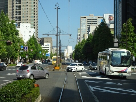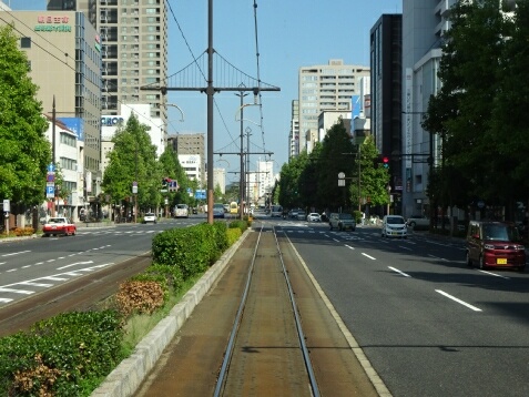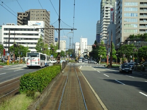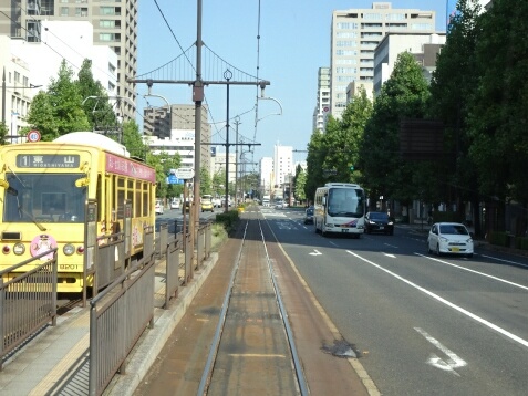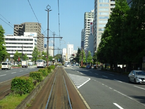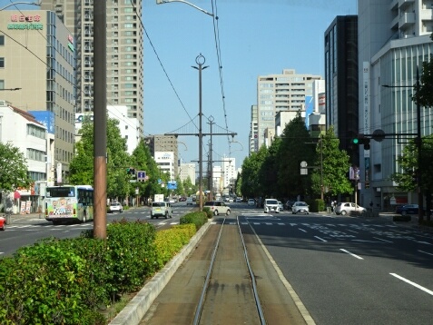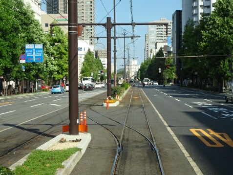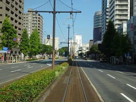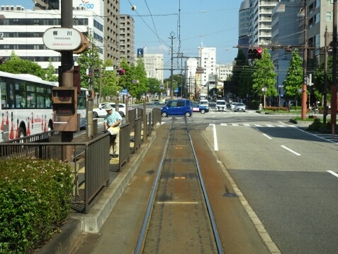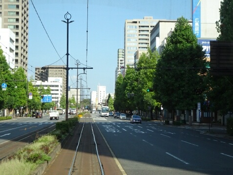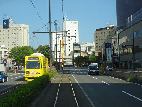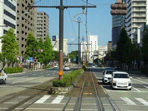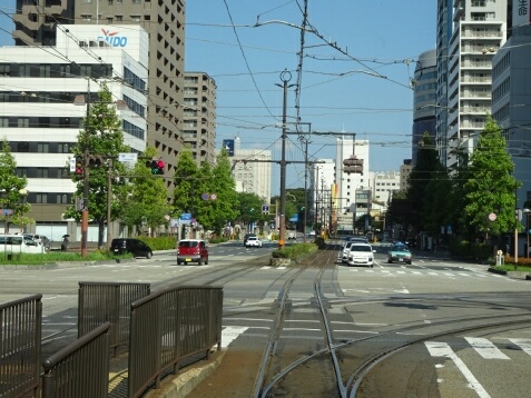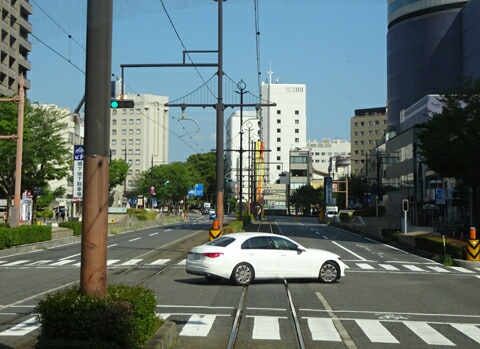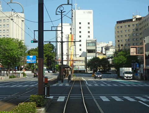 もう一つ狭い交差点を過ぎると、城下電停です。