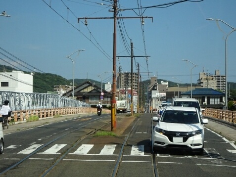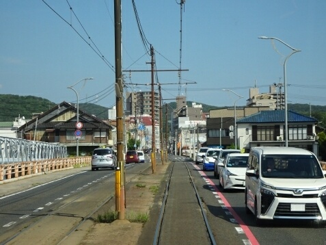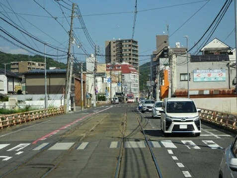 小橋電停〜中納言電停間は電停間距離が短いです。