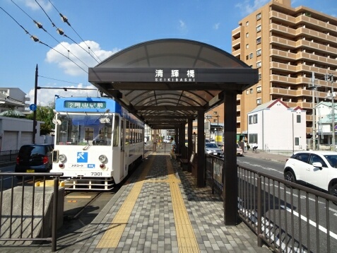 清輝橋交差点の手前にある、片面1線の電停です。