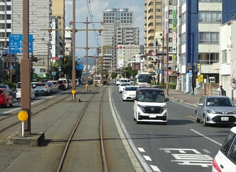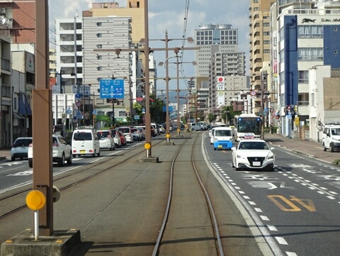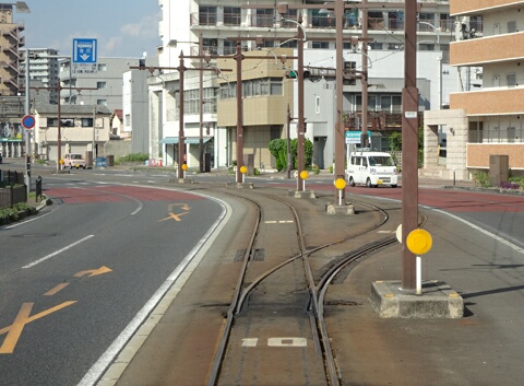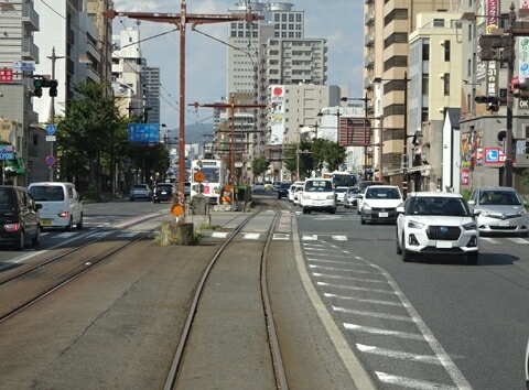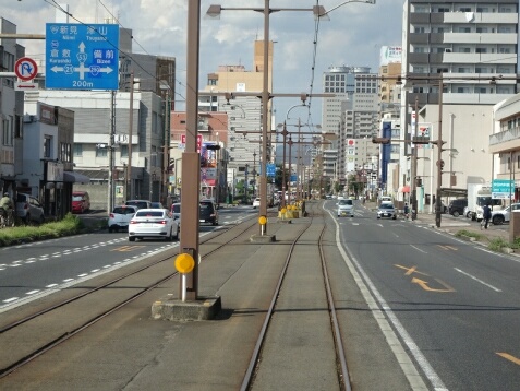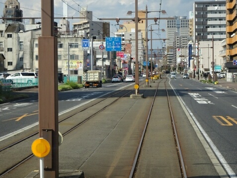 清輝橋線は単に市街地を南に行く路線なので、