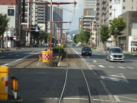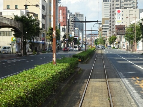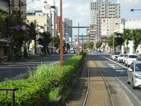 大雲寺前電停から中央分離帯が上下線間に入ります。
