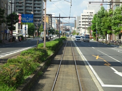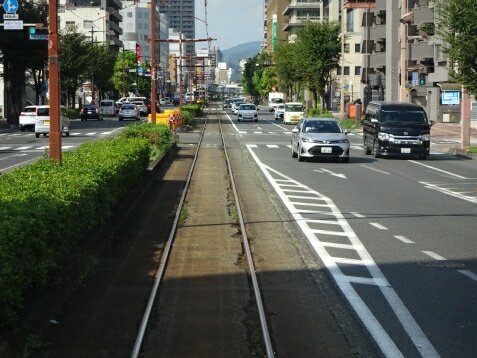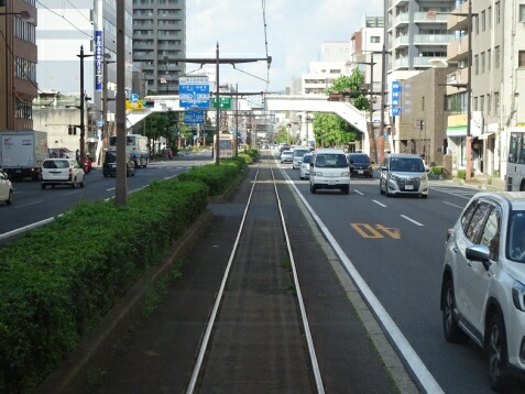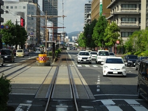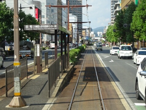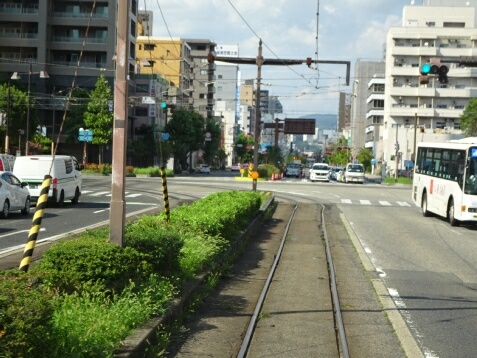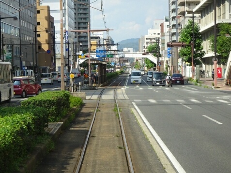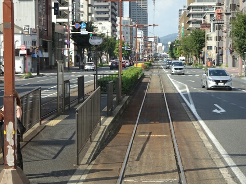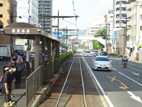 郵便局前交差点を過ぎると、郵便局前電停です。